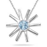 0.23 Cts Aquamarine Solitaire Sun Pendant in Sterling Silver