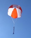 , After many experimental trials with high altitude weather balloon payloads, we have arrived at this optimized parachute design. It allows for a stable parachute deployment at ~Mach 1 when the balloon initially bursts in the vacuum of near-space. The 36in diameter parachute is designed to yield a descent rate of 1500ft/min (15mph) once back into the thicker atmosphere near sea level. The bright orange and white gives a high contrast for high visibility during flight and recovery phases. The Project Aether recovery chute is individually hand made in the USA with a 6 sided design using 1.9oz/sqyd (70 Denier) ripstop nylon. The silicone coated parachute makes the parachute waterproof on both sides and is lighter than standard polyurethane coated chutes. The waterproofing ensures that the chute opens even if soaked in water or rain. All seams are sewn with nylon bonded thread using a durable 5-thread safety lock stitch, overcasting and finished with a clean seam. The shroud lines consist of MIL-C-5040 Type 1A military survival cord at a mere 1/16" in diameter yet has a tensile strength of 100lbs per line. Three reinforced xxx lines, using MIL-C-5040 Type 2A military survival cord, complete the chute at the top for easy in-line connection to weather balloon assemblies or rocket nose cone trains. ...